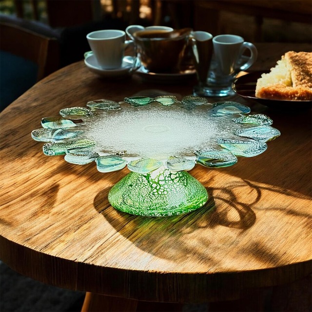 華やかなデザインが魅力的な、ゴージャス 2way コンポートが登場です!当工房オリジナルのコンポートは、シンプルながらも洗練されたデザインが特徴で、食卓やカウンターに華を添えるアイテムです。このコンポートは、アクセサリーにも使用する銀箔入りのガラスパーツをふんだんに使用して丁寧に仕上げられており、お菓子やフルーツをスタイリッシュに盛り付けられる2wayタイプの優れものです。