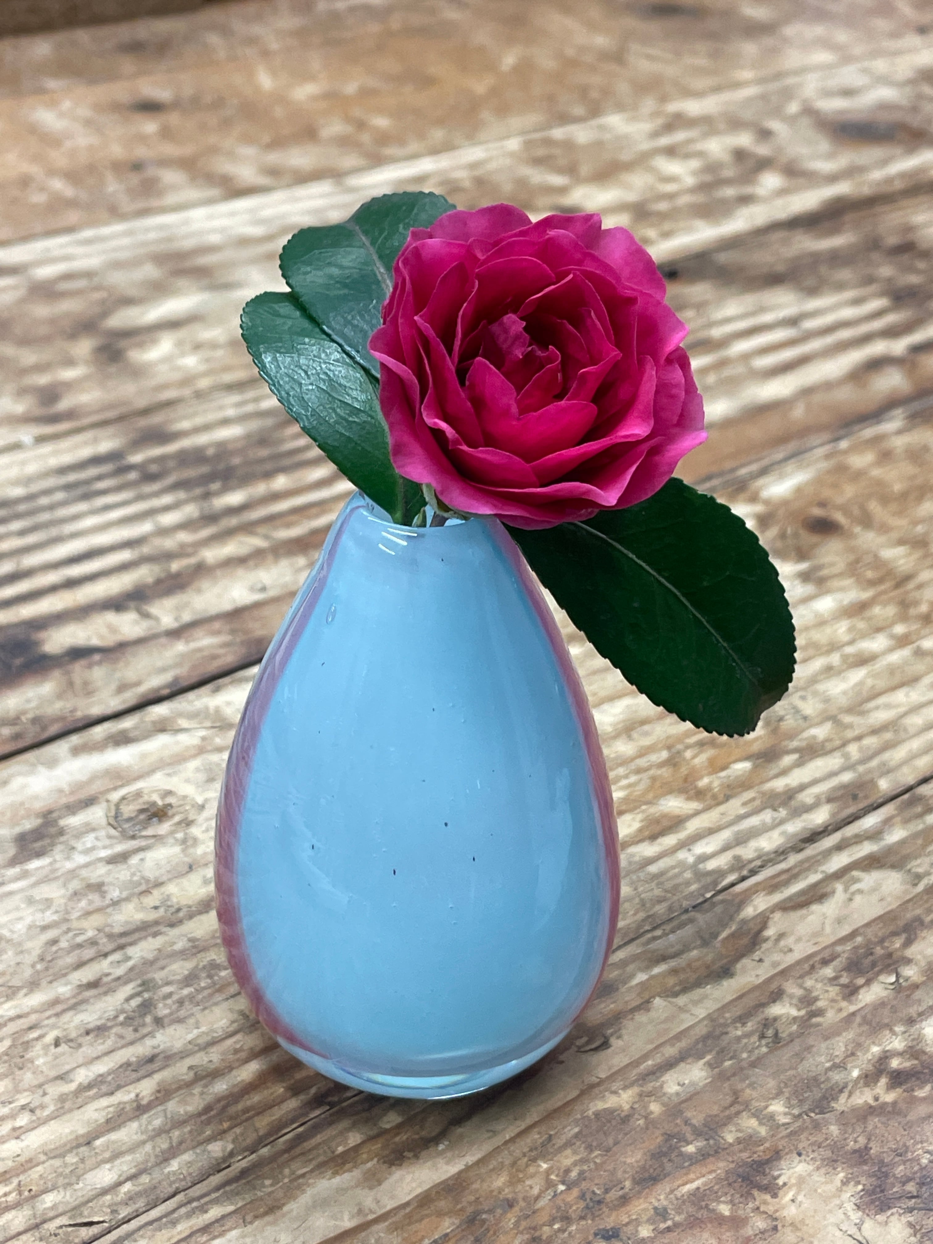 手作業で丁寧に仕上げられたこの一輪挿しは、どんな花をも引き立たせる美しいデザインが魅力です。流線型のフォルムが、テーブルや窓辺に穏やかな印象を与えます。