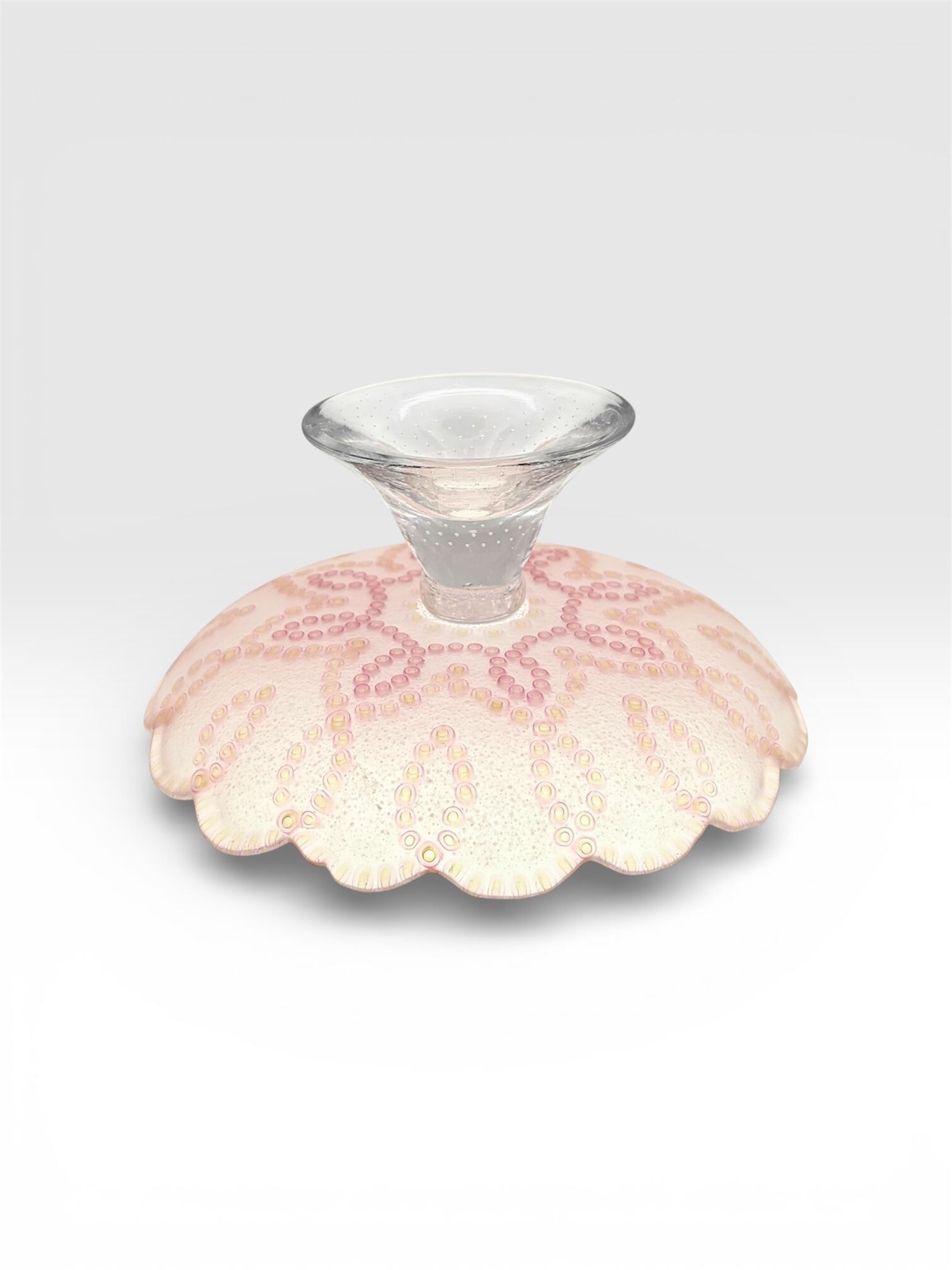 脚部には吹きガラス技法が施されており、安定感も抜群です。ディスプレイとしても素敵に映えるこのアイテムは、ホームパーティーや特別な日のテーブルに華を添えてくれますので、ぜひご検討ください!