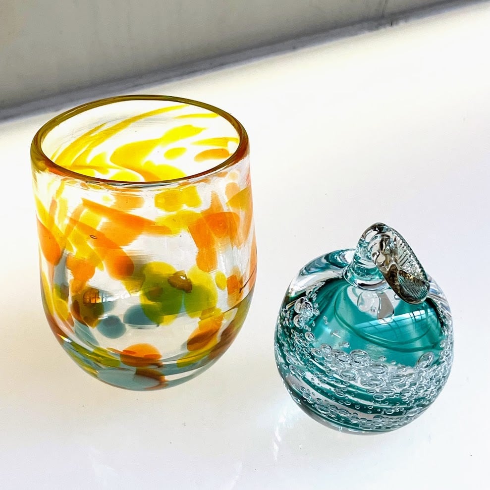 吹きガラス体験ギフトチケット コップ、ボウル、花瓶、ペーパーウェイトの中から2人で2個、ガチャガチャ2回付き